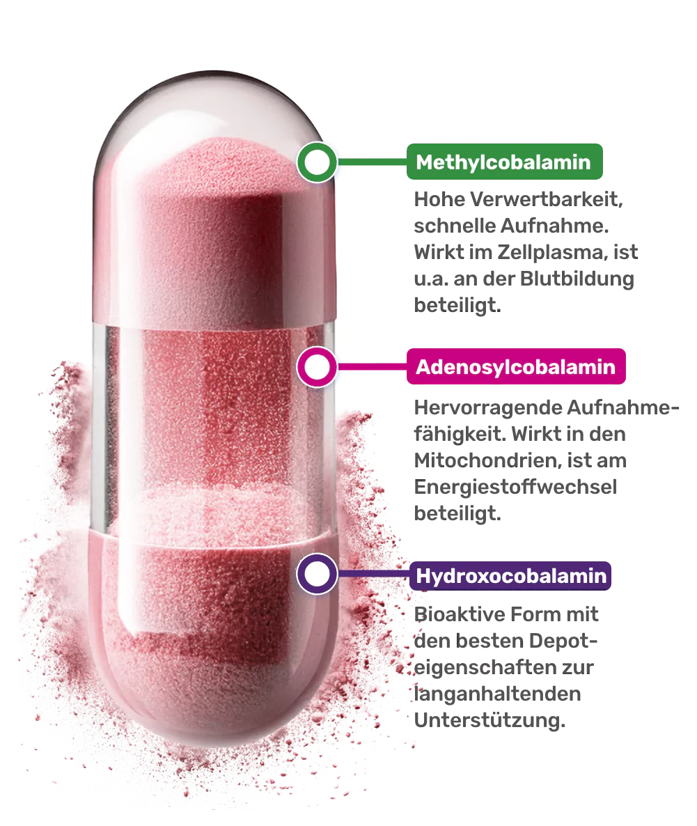 Alle 3 natürlichen Vitamin-B12-Formen in einer Kapsel